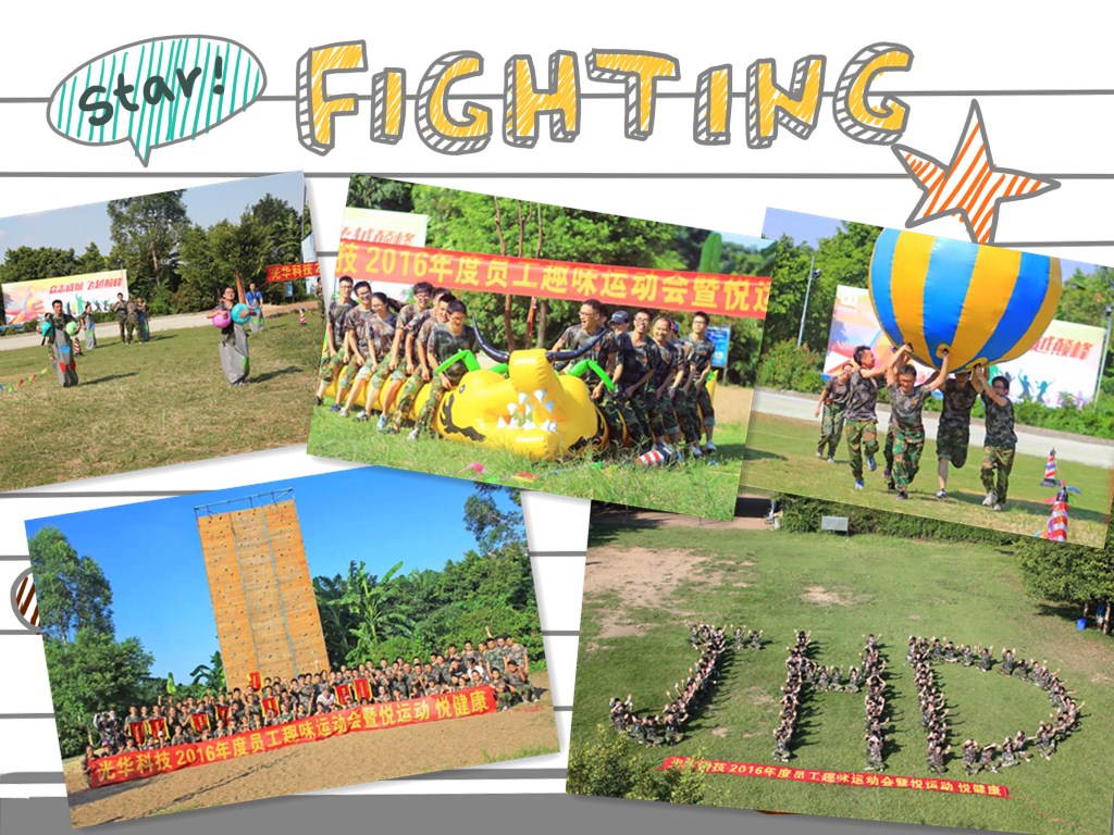 夏日炎炎,驕陽似火,伴隨著熱鬧非凡的開幕式,廣東光華科技股份有限公司2016年度員工趣味運動會拉開了序幕。旱地龍舟,快樂大腳,運轉乾坤,袋鼠運瓜幾個比賽項目輪番上線。賽場上,每一位隊友和對手的努力拼搏;賽場外,拉拉隊的加油聲、歡呼聲......所有的這些都凝聚成為一股力量支持著小伙伴們不畏炎熱,奮力前行。最后,比賽在熱烈、歡樂的頒獎儀式中落下帷幕。