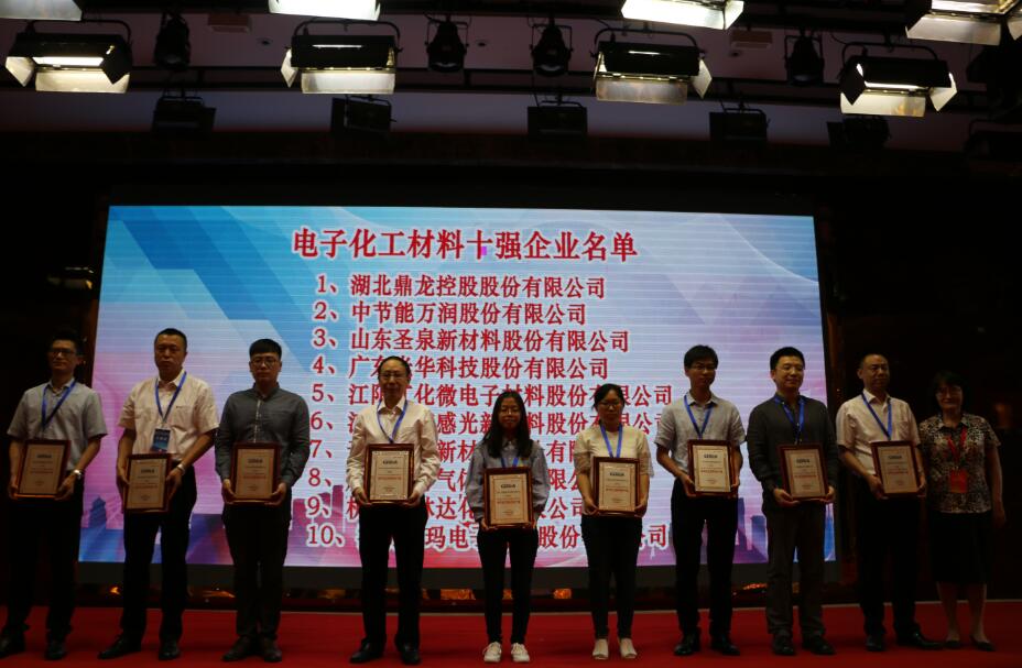 大會(huì)重磅發(fā)布了第二屆(2017年)中國電子材料五十強(qiáng)企業(yè),以及相關(guān)電子材料專業(yè)十強(qiáng)企業(yè)名單。光華科技憑借在專用電子化學(xué)品領(lǐng)域的突出表現(xiàn),光榮入選中國電子材料五十強(qiáng),并被評(píng)為電子化工材料十強(qiáng)企業(yè)!