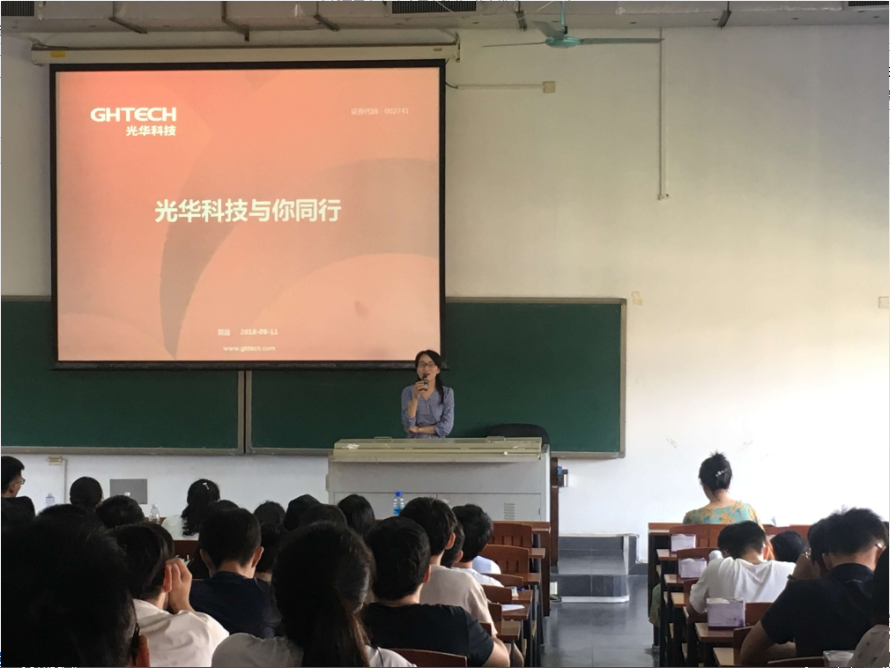 隨后,在廣東工業(yè)大學(xué)的輕工化工學(xué)院新生入學(xué)典禮上,光華科技優(yōu)秀管培生代表與新同學(xué)進(jìn)行了“光華科技與你同行”的分享,展現(xiàn)了光華科技的企業(yè)風(fēng)采,介紹了光華易購平臺為新同學(xué)未來學(xué)習(xí)中帶來的幫助。