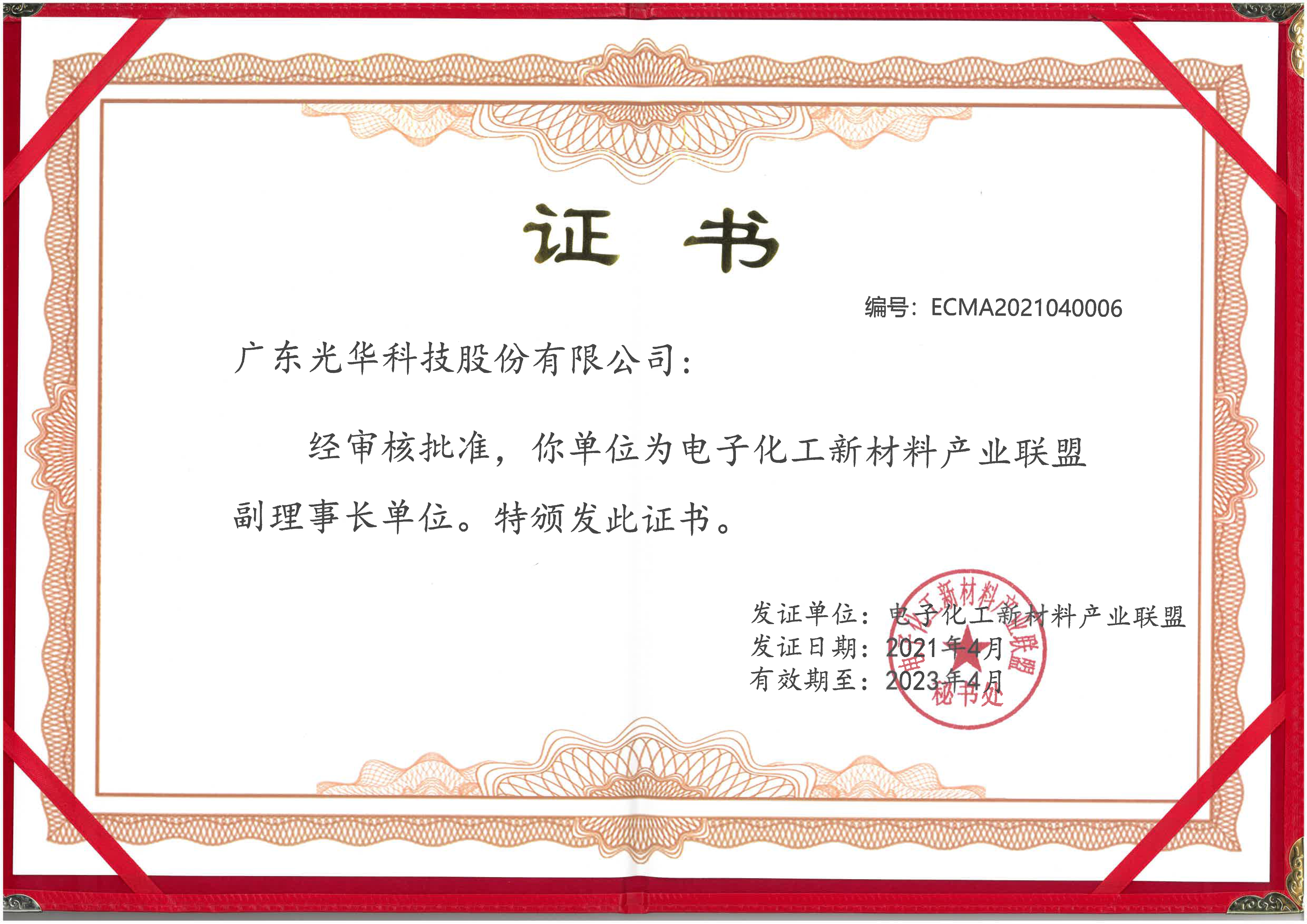 會議召開了電子化工新材料產(chǎn)業(yè)聯(lián)盟一屆六次理事會,聯(lián)盟秘書處向大會作了聯(lián)盟一屆理事會工作報告,大會選舉產(chǎn)生了新一屆理事會,光華科技蟬聯(lián)聯(lián)盟副理事長單位,光華科技董事、光華科技研究院總經(jīng)理?xiàng)顟?yīng)喜當(dāng)選聯(lián)盟副理事長。