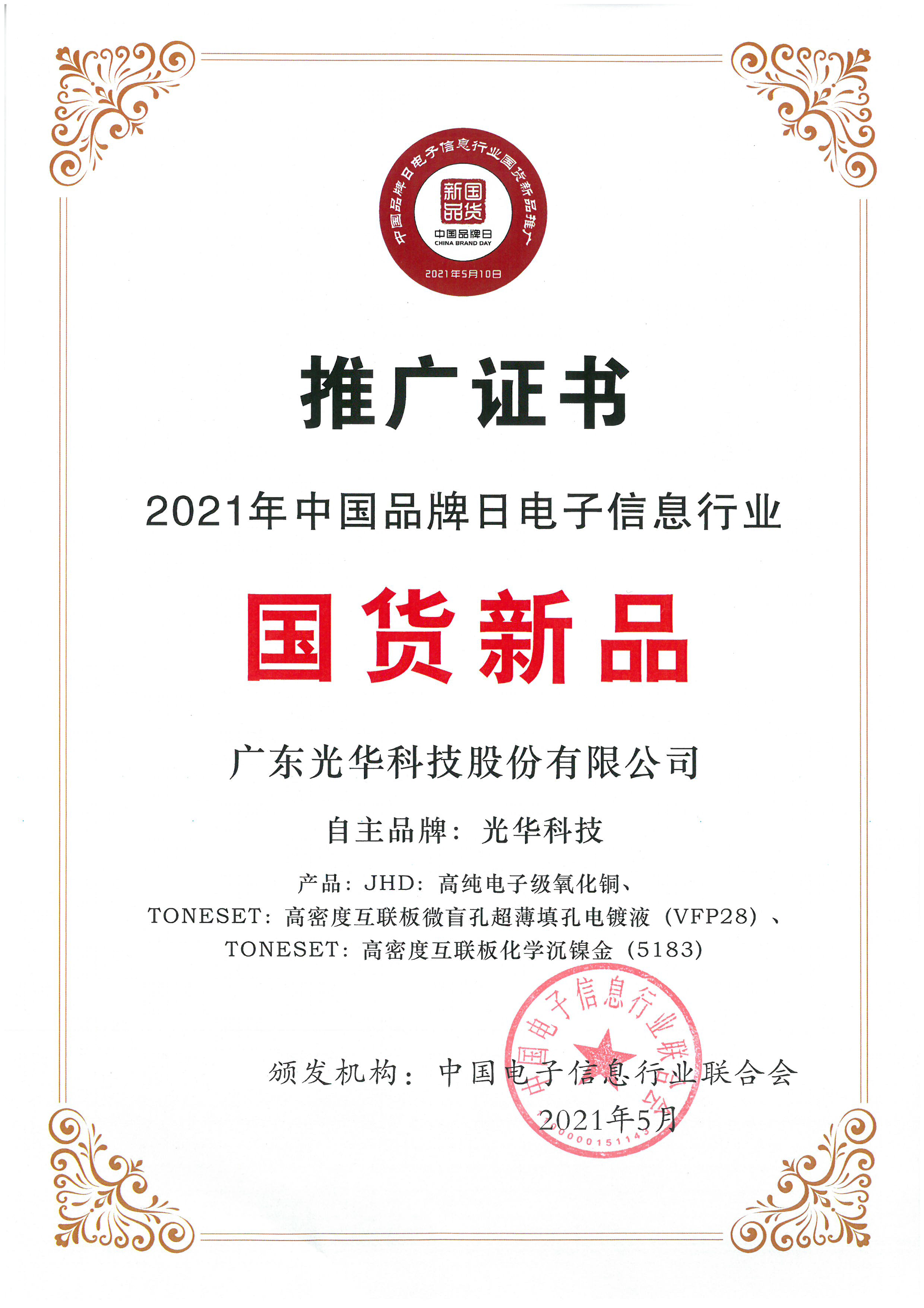 2021年是“十四五規(guī)劃”的開局之年,也是中國(guó)品牌建設(shè)的關(guān)鍵之年,中國(guó)越來越多品牌已成為國(guó)家名片。在今年中國(guó)品牌日活動(dòng)中,光華科技旗下產(chǎn)品品牌JHD的高純電子級(jí)氧化銅,憑借廣泛應(yīng)用于集成電路領(lǐng)域、質(zhì)量達(dá)到國(guó)際領(lǐng)先水平、與全球知名標(biāo)桿客戶長(zhǎng)期戰(zhàn)略合作等優(yōu)勢(shì)脫穎而出,入選由中國(guó)電子信息行業(yè)聯(lián)合會(huì)頒發(fā)的“2021年中國(guó)品牌日電子信息行業(yè)國(guó)貨新品”目錄。“國(guó)貨”光華科技高純電子級(jí)氧化銅為何做到行業(yè)持續(xù)領(lǐng)先?下面為您一一揭秘!
