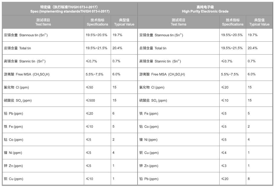 錫含量高,游離酸含量低,有機雜質及金屬雜質含量低;