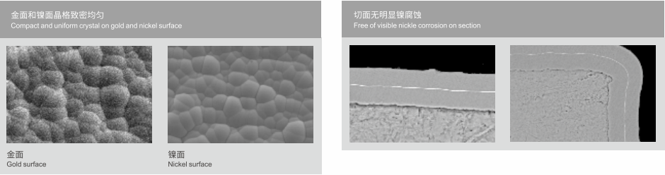 化學(xué)沉鎳金是PCB最終表面處理工藝一種,用于在金屬銅面沉上一層鎳和金,屬于中磷和中高磷系列,具有優(yōu)異的可焊性、抗腐蝕性和耐磨性,是專門為PCB最終表面設(shè)計(jì)的理想工藝。